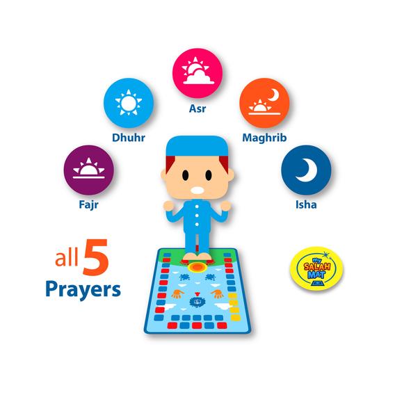 My Salah Mat is a prayer mat designed to educate children on how to perform the Muslim prayer in a fun and enjoyable way. The interactive prayer mat is touch-sensitive and has pre-recorded keys that can be touched to reveal the sound, such as prayer times, how to do wudu, recite surahs, say Duas, and much more.